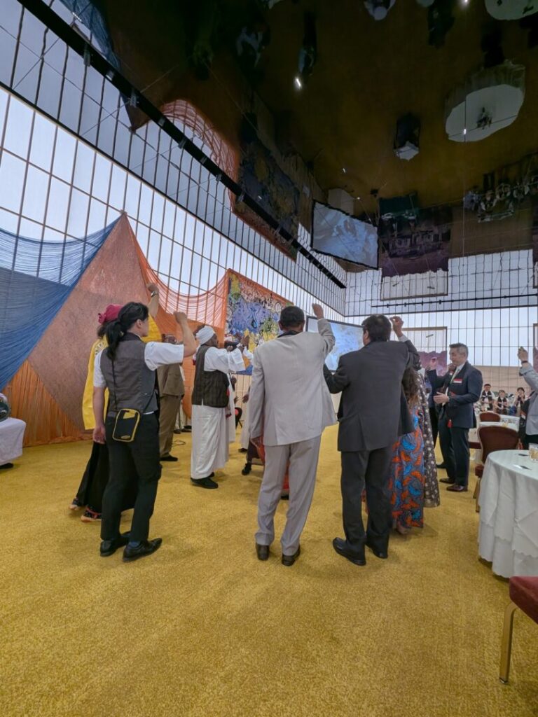 食事を楽しんでいる間、スーダンの皆さんの歌やダンスのパフォーマンスもあり、気づいたらその中にやんぶさんも翼先生も入って踊ってました。そういう度胸ある楽しみ方がスーダンの方達に更に喜ばれる結果に!