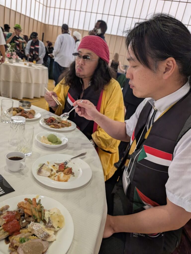 こんな感じのご招待を受けて、やんぶさん、神野翼先生、事務局の3人のみまずは大使館やVIPの皆さんとのランチへ。なんと場所は万博会場内にある迎賓館。ついに勝手に大阪観光大使のやんぶさん、国賓になりました🇸🇩